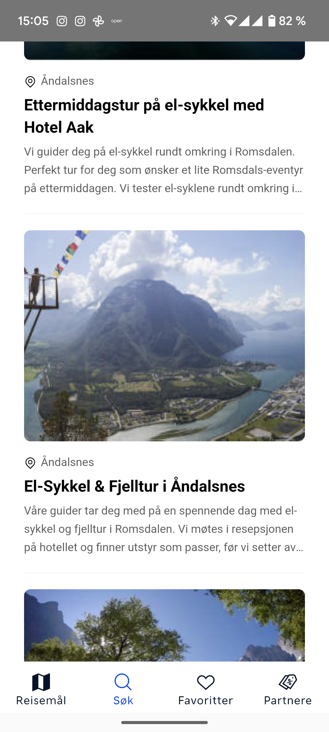 Jeg søkte på «Åndalsnes» og fikk opp en mengde forslag til aktiviteter: