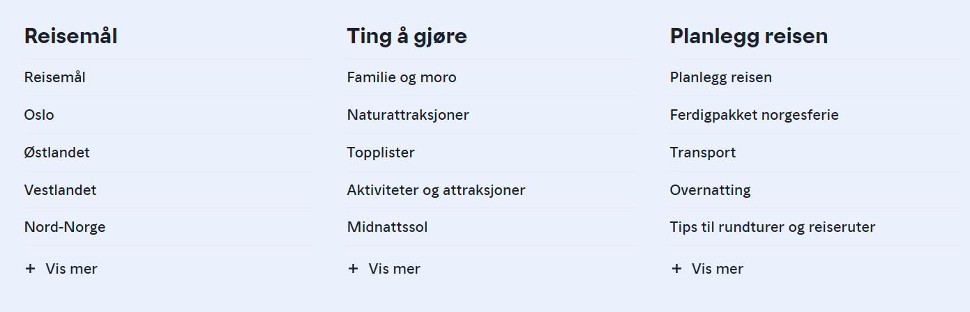 Siden det heter Visit Norway er det nok laget i utgangspunktet for utenlandske turister. Men det fungerer fint for oss nordmenn som ønsker å feriere i eget land også.
