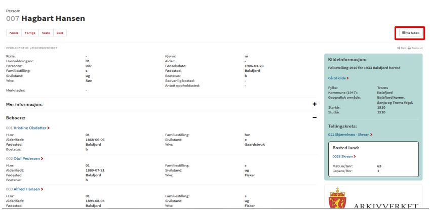 Dette vises som standard som en liste over de som bodde i huset den dagen tellingen foregikk.