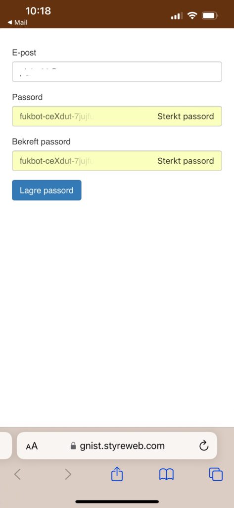 Husk at passordet må fylles ut identisk to ganger. Avslutt med å trykke Lagre passord.
