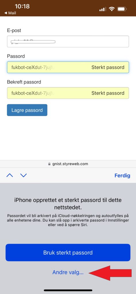 Hvis du synes dette er en løsning som fungerer for deg kan du bruke passordet og lagre det.