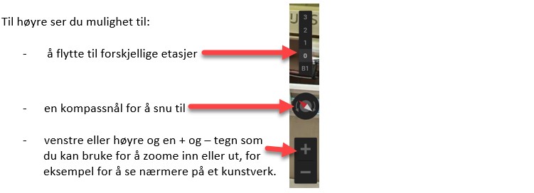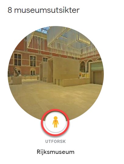 • Nederst på siden finner du 8 museumsutsikter. Det er her du finner det kjente ikonet fra Google Street View. Det betyr at, ved å velge en av disse museumsutsikter, kan du ta deg en virtuell tur i museet.