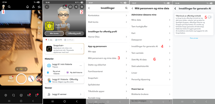 Snapchat bruker nå det du legger ut til å lære opp dataprogrammene sine (kunstig intelligens). Dette gjør Snapchat uten å be deg om tillatelse eller informere om det. I Norge og EU er det personvernforordningen (GDPR) som regulerer dette. I korte trekk sier loven følgende om situasjoner som denne med Snapchat. Du har rett på informasjon fra selskap som ønsker å bruke dine personlige opplysninger til nye formål, som for eksempel trening av kunstig intelligens.