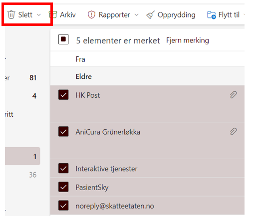 Slett e-poster du ikke har bruk for!