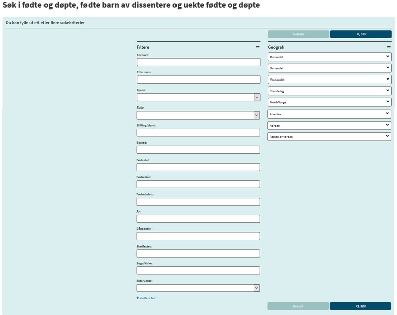 Skjemaet for å søke i en kirkebok