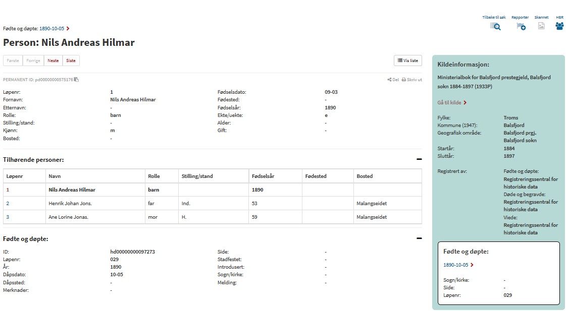 Dersom jeg klikker på navnet Nils Andreas Hilmar får jeg opp en oversikt over foreldre også.