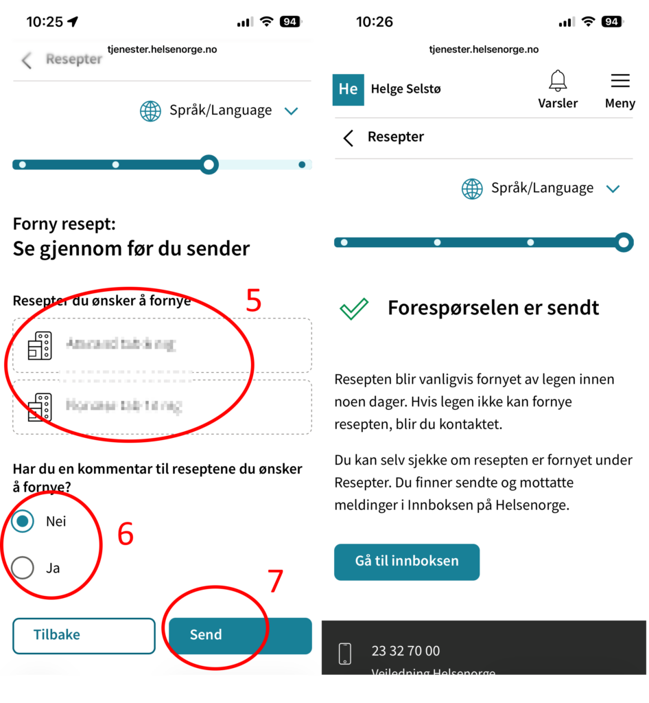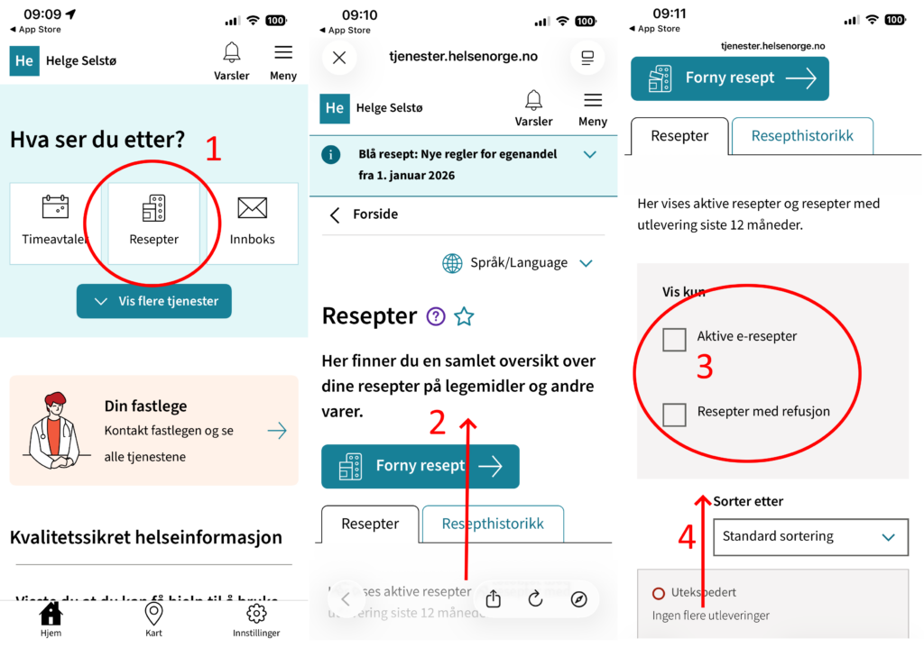 - Trykk på «Forny resept»