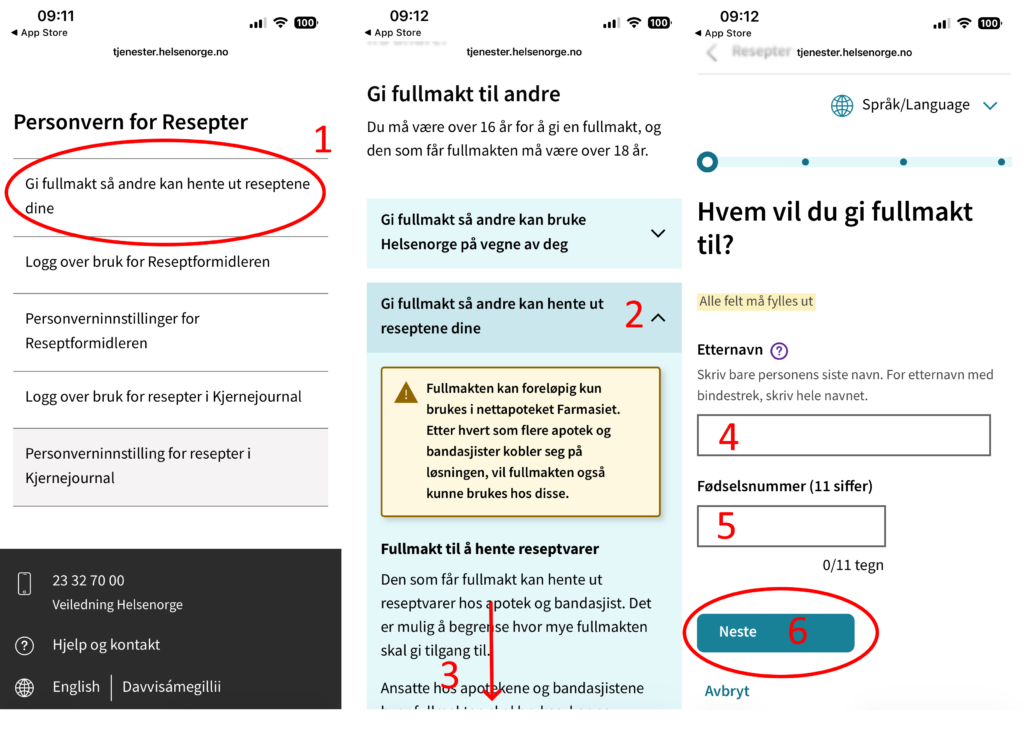 - Trykk på «Gi fullmakt så andre kan hente ut reseptene dine»