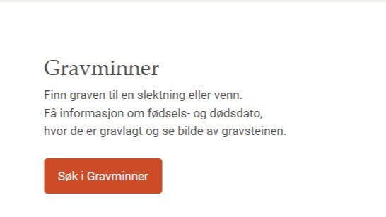 Når du skal finne et gravsted og er inne på første siden til Slekt og Data så må du rulle deg et stykke ned på siden for å finne Gravminner (se bildet).