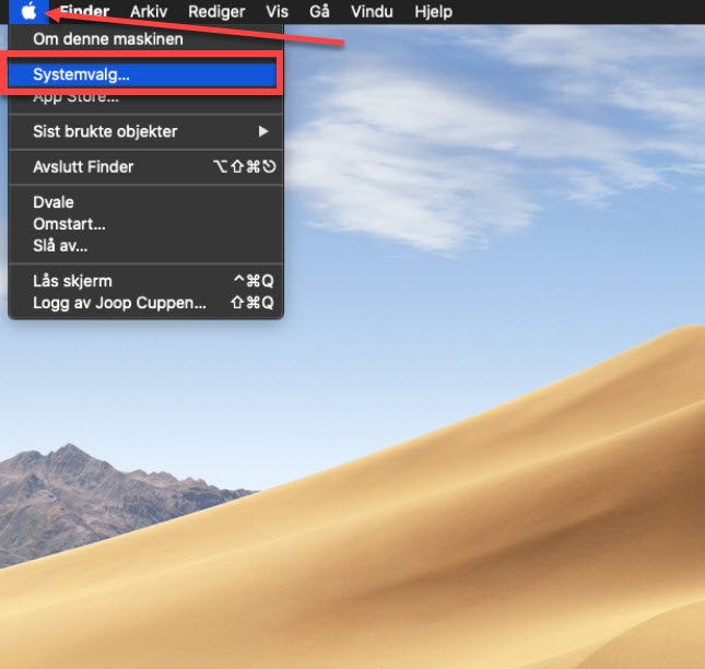 – Klikk på Apple-symbolet (øverst til venstre på skrivebordet) og klikk på Systemvalg