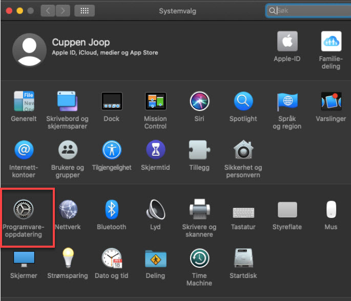 – Klikk Programvareoppdatering (tannhjulikonet)