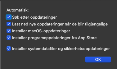 Apple kommer regelmessig med nye oppdateringer. Det kan være små forbedringer i programmer, sikkerhetsoppdateringer eller en helt ny versjon av selve operativsystemet. Oppdateringer av operativsystemet gir ofte helt nye funksjoner, tenk her på funksjoner som for eksempel Time Machine og Siri, som er blitt lagt til over tid. Operativsystemoppdateringer vil også kunne endre utseende, det har for eksempel kommet en mørk modus eller en dynamisk modus for skrivebordet på Mac. I tillegg vil slike oppdateringer kunne legge til nye programmer eller erstatter gammel programvare med forbedrede varianter. Oppdateringer er derfor viktig for sikkerheten, samt at den holder datamaskinen din oppdatert.