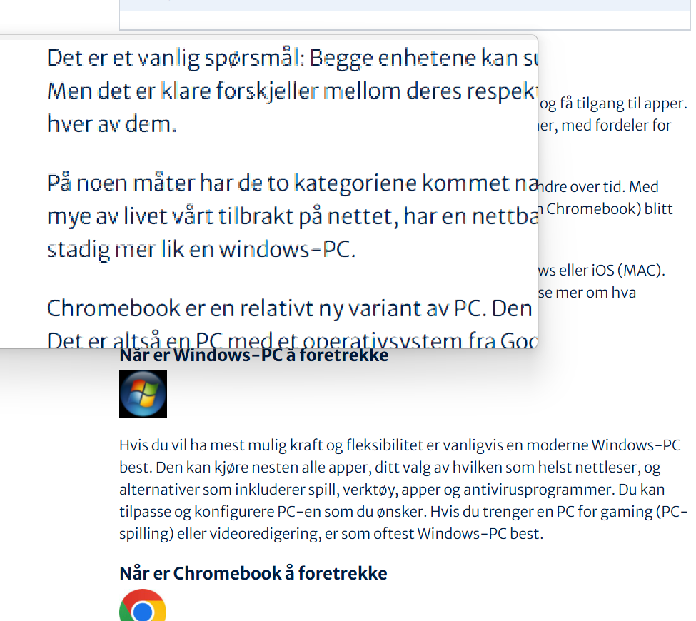 Jeg ser på en artikkel på seniornett.no vi tidligere har skrevet. Slik ser det ut uten å bruke forstørrelse: