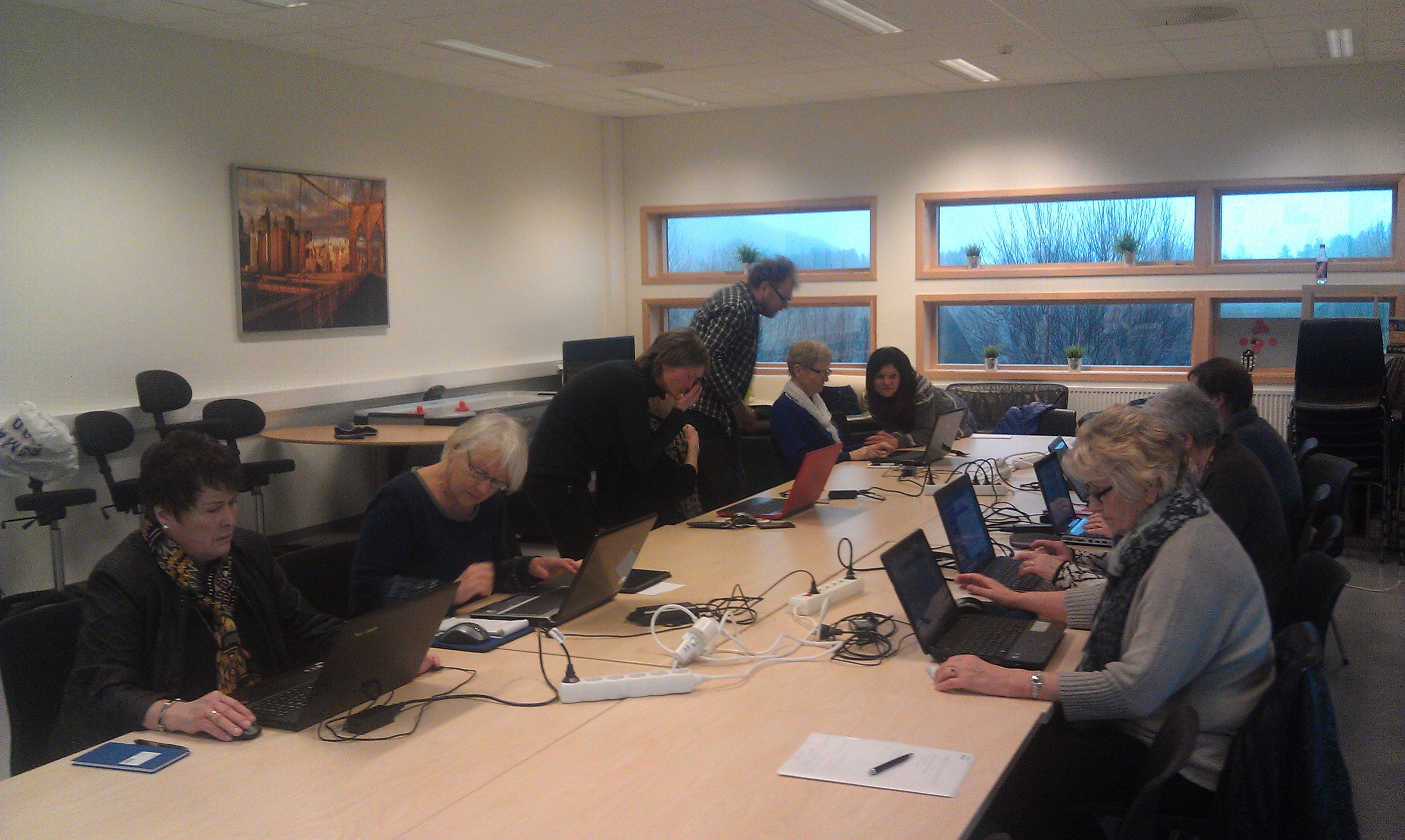 Hold Control-/Cmd-tasten nede. Trykk på + for å forstørre eller − for å forminske.