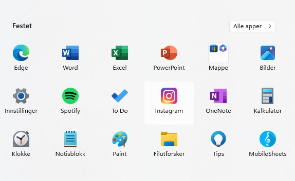 Liker du å starte programmer fra Startmenyen? (Startmenyen er den som vises når du trykker på Start/Windows-knappen. Altså den knappen som ser ut som et flagg og som normalt ligger nederst til venstre på skjermen). Du får også opp Startmeny hvis du trykker på windows-knappen på tastaturet.