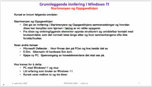 Er Startmenyen og Oppgavelinjen noe du er fortrolig med? Er sikkerhetsopplegget i Win11 bra? Hvordan setter man det opp? Og ikke minst hva bør du se på og vurdere om du skal kjøpe ny pc? For mer informasjon, se bildet som er lastet opp. Kursholder: Finn W. Strand.