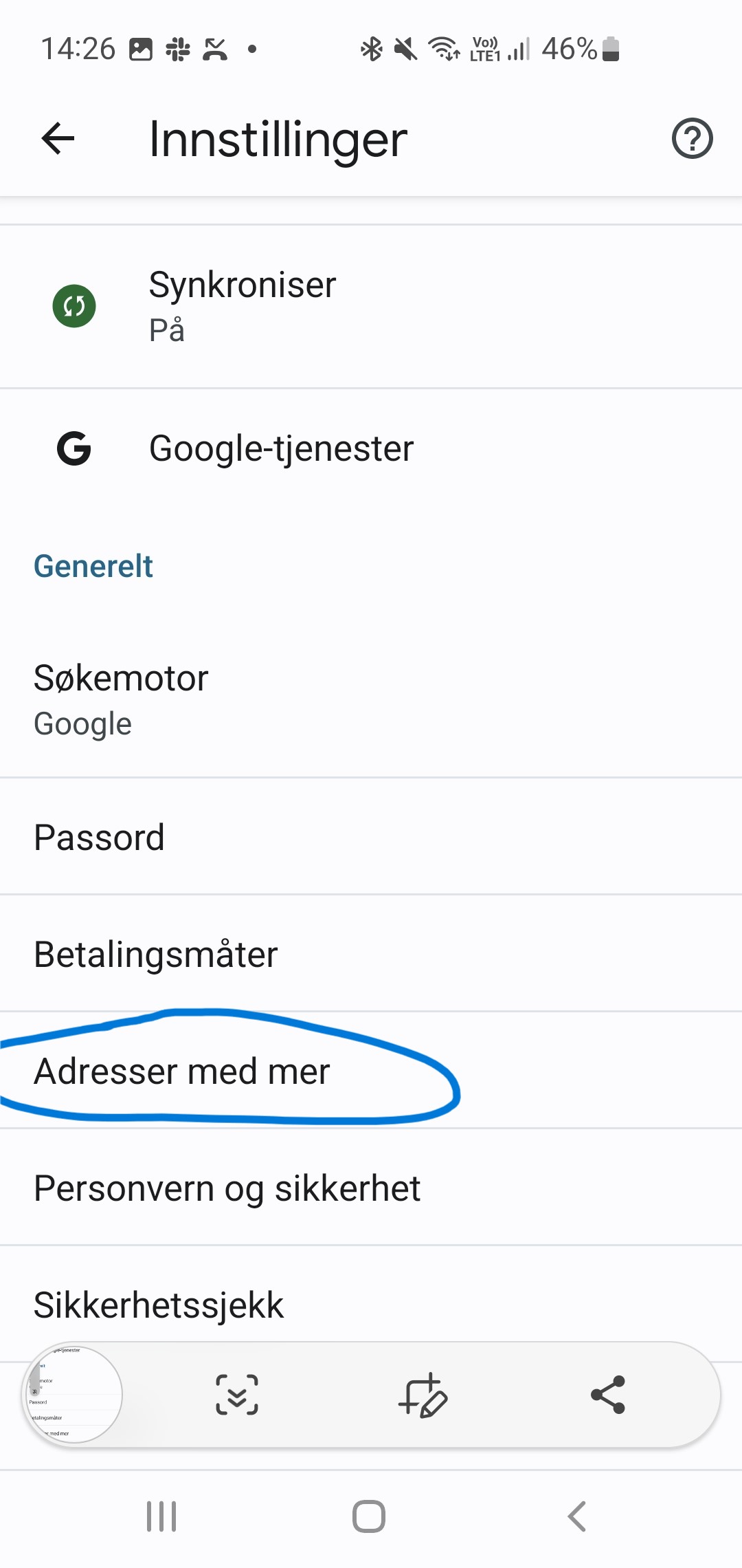 Når du skal fylle ut et skjema i Chrome, kan du ofte velge at det skal fylles ut automatisk. Noen ganger har nettleseren registrert gamle verdier (det vil si verdier som ikke lenger gjelder, for eksempel en postadresse du ikke lenger bor på). Du kan administrere hvilke data den skal kunne fylle ut.
