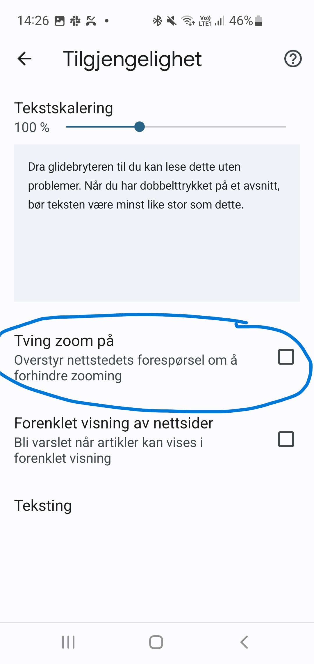Noen nettsteder tillater ikke at du zoomer bilder. Det kan du overstyre, slik at du alltid kam zoome.