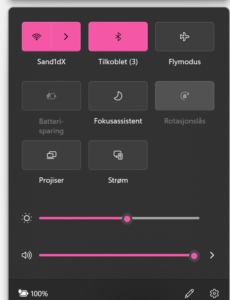 I Windows 10 får du opp tilsvarende ved å trykke varsel-ikonet helt nederst til høyre på skjermen (firkantet «snakkeboble»)