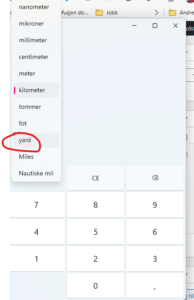 Velger Yard som enhet (fra) og meter som enhet (til)