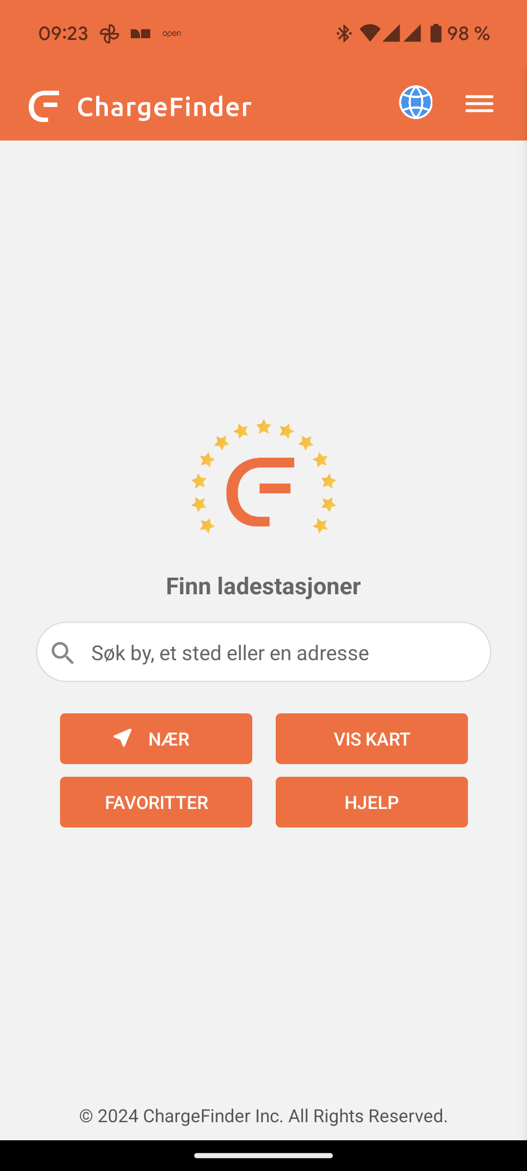 Appen heter Charge Finder men du kan velge norsk språk slik at alt du ser der er på norsk.