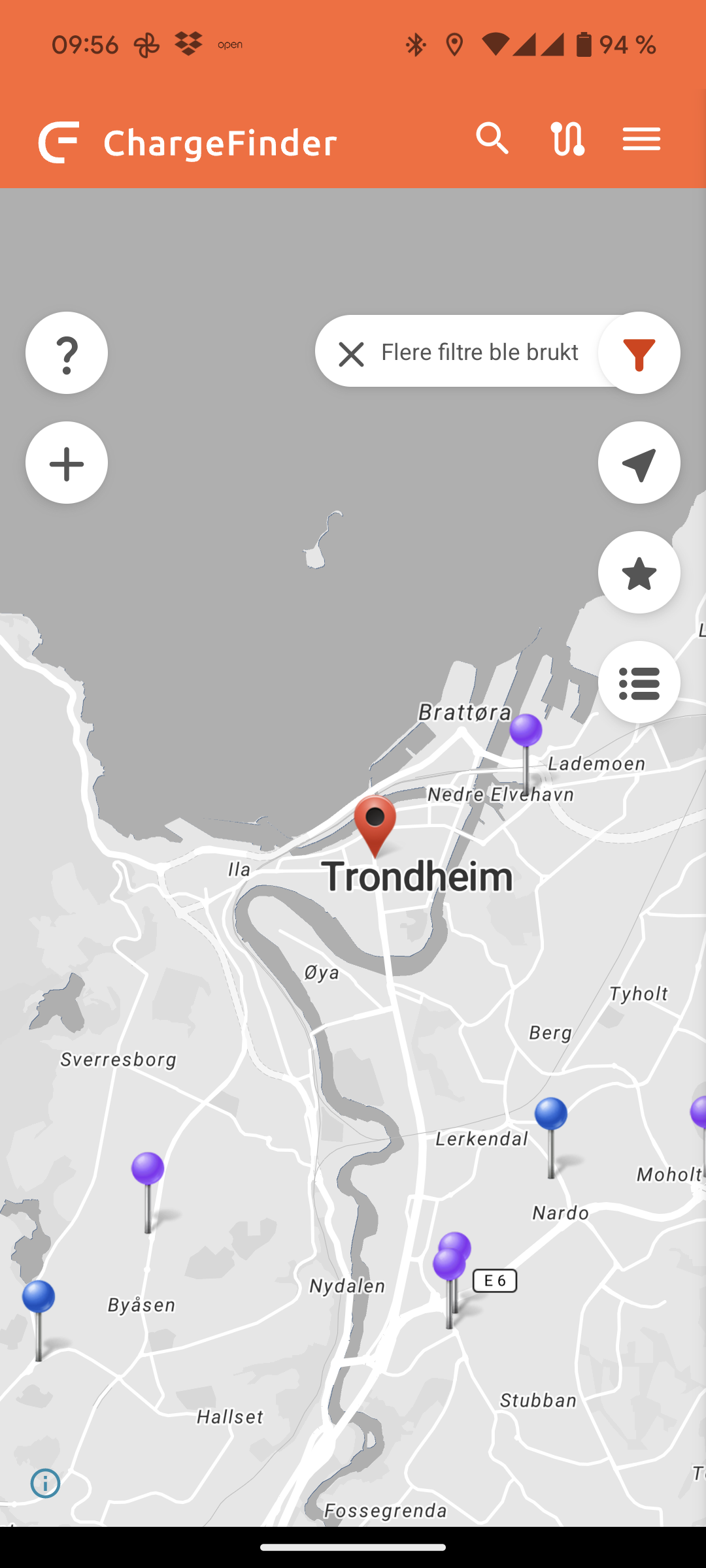 Hver gang du ser et kart kan du også få listet opp ladestasjonene på tekst. Da trykker du på tegnet for liste