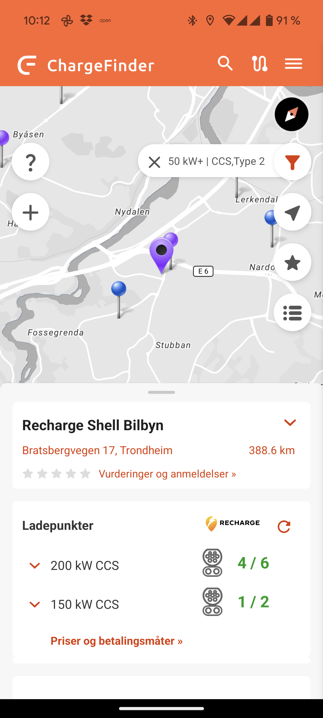 - Du kan se prisen på ladning tilknyttet en spesifikk ladestasjon
