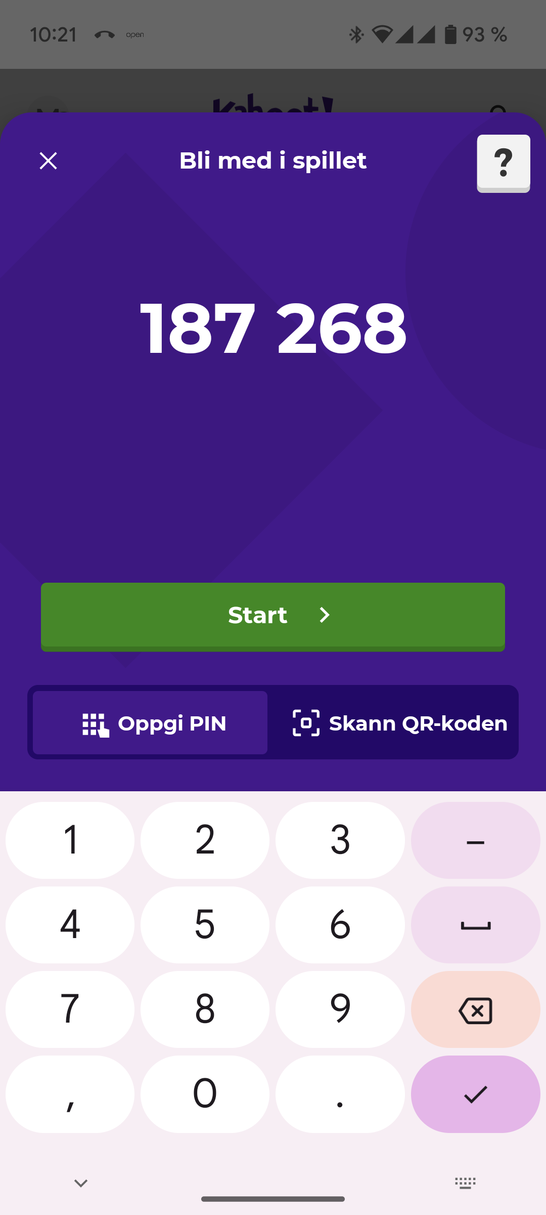 Hver gang du starter en quiz kommer det opp en ny pin. Deltakerne skriver inn den pin-koden for å angi at de er med i quiz-en.