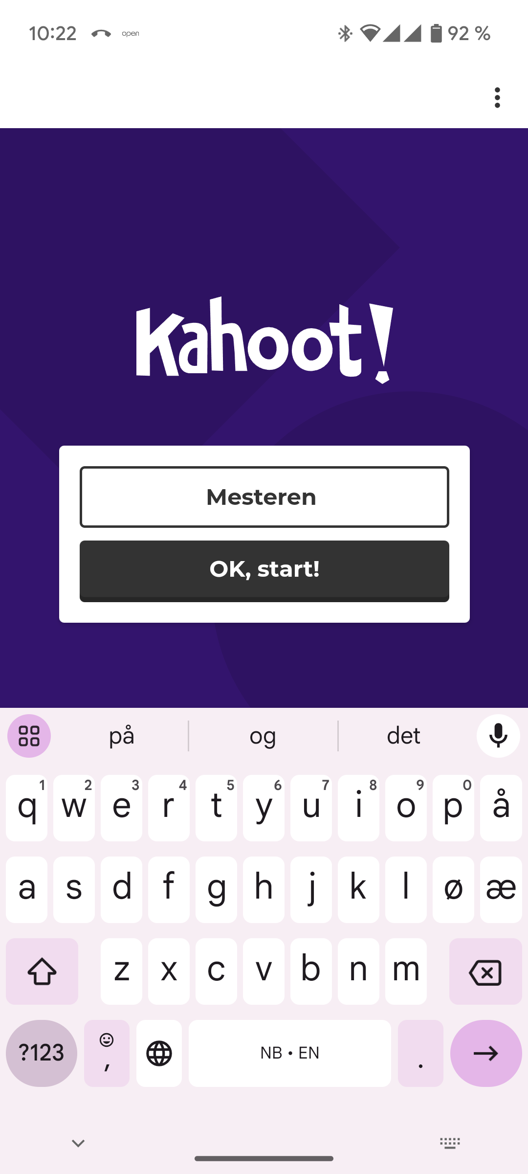 Appen finner du der du installerer apper (Google Play butikk eller Apple Appstore). Søk etter Kahoot så finner du den.