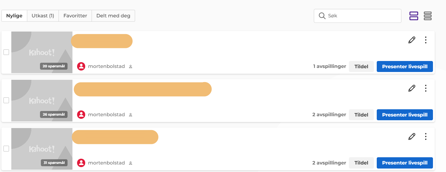 Gå inn på «Bibliotek». Der ser du alle quiz-ene du har laget.