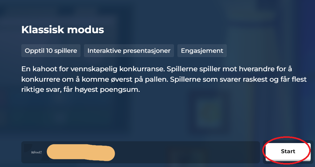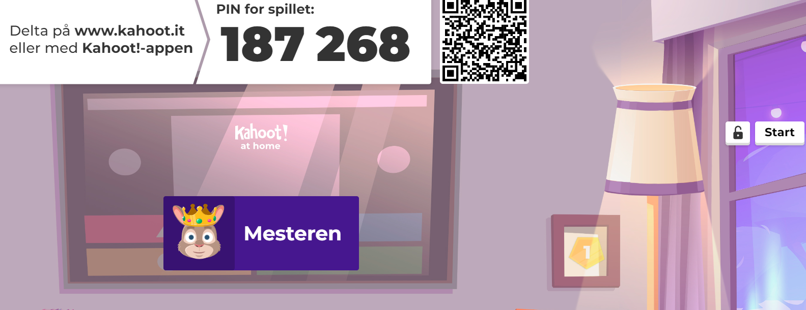Når alle som skal delta vises på storskjermen er vi klare til å starte. Quizmaster går da inn på PC-en og trykker på Start:
