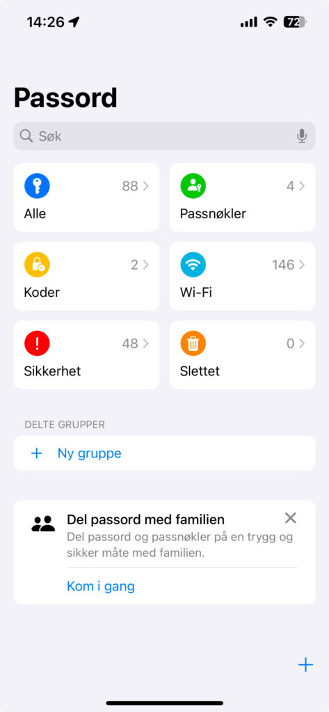 Når du har startet iPhonen din etter å ha oppdatert den til iOS 18 eller 18.1 kan du lete deg frem til du finner ikone med tre nøkler. Denne appen er utrolig nyttig og det er egentlig litt pussig at den ikke har blitt lagt inn tidligere. Det finnes mange andre apper som gjør omtrent samme jobben, men da må du laste ned og sette den opp. Passord som følger med iOS 18 er der og er klar til bruk.