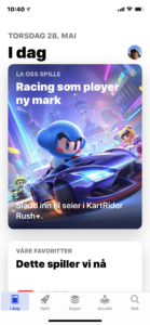 Slik ser det ut i app-butikken til iPhone. Forstørrelsesglasset nede til høyre er søkefunksjonen.